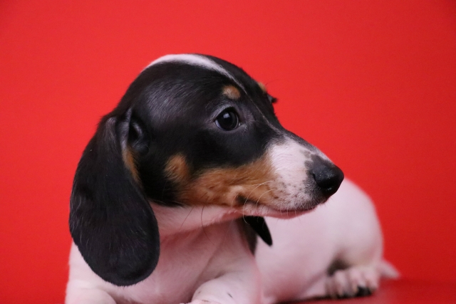 ミニチュア・ダックスフンド(スムース) ブラックタン パイボールド ♂(男の子) 愛知県【 ブリーダーズ 】