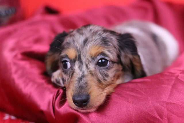 ミニチュア・ダックスフンド(ロング) シルバーダップル パイボールド ♀(女の子) 愛知県【 ブリーダーズ 】