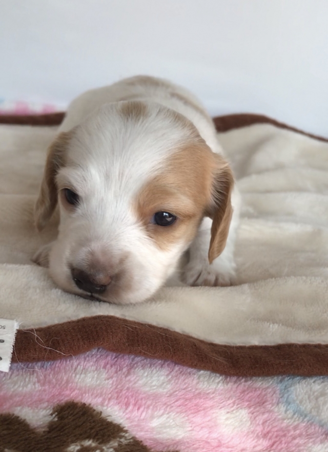 ミニチュア・ダックスフンド(ロング) クリーム パイボールド ♀(女の子) 神奈川県【 ブリーダーズ 】
