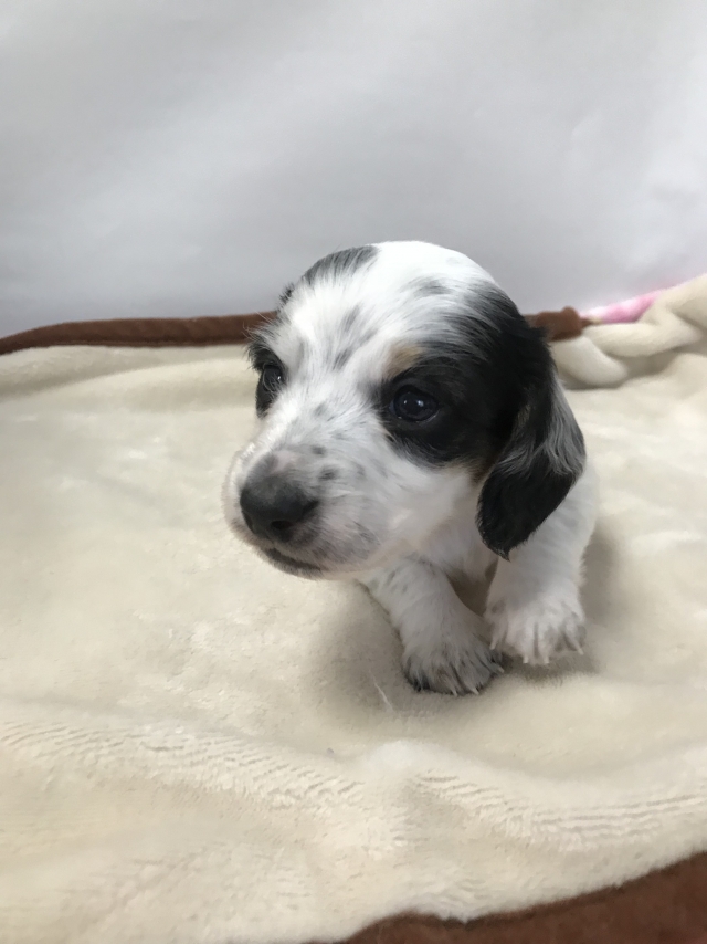 ミニチュア・ダックスフンド(ロング) ブラックタン パイボールド ♂(男の子) 神奈川県【 ブリーダーズ 】
