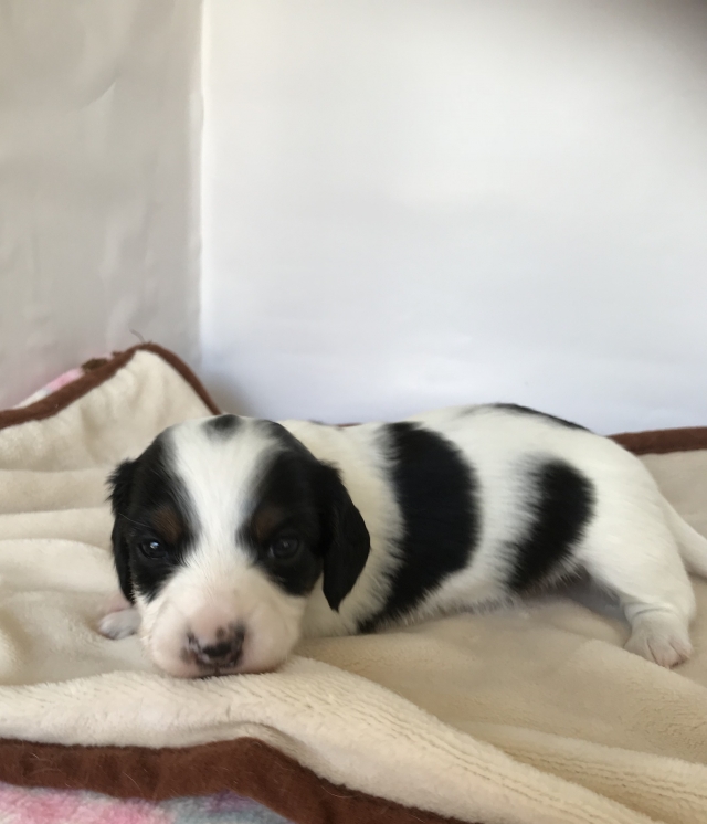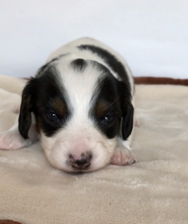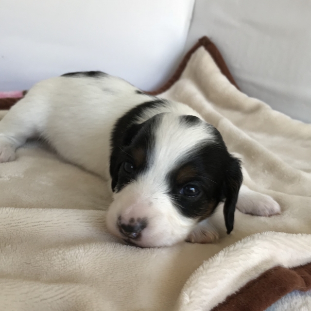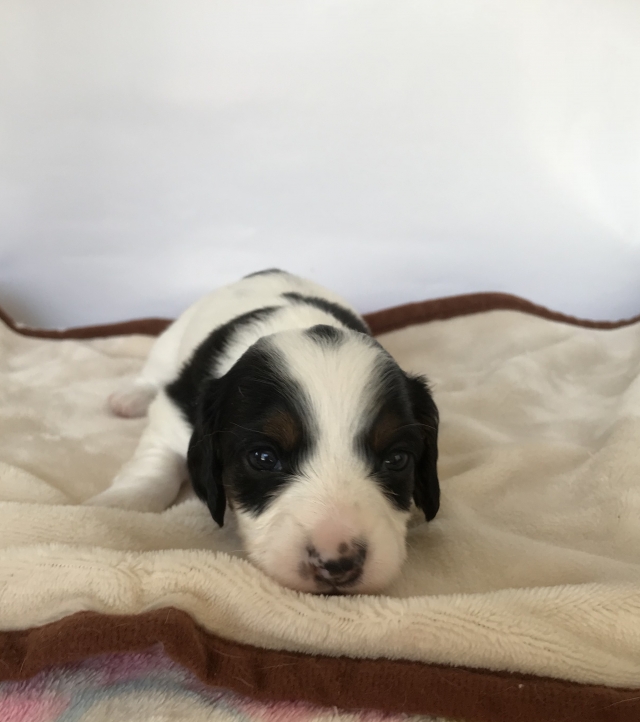 ミニチュア・ダックスフンド(ロング) ブラックタン パイボールド ♂(男の子) 神奈川県【 ブリーダーズ 】