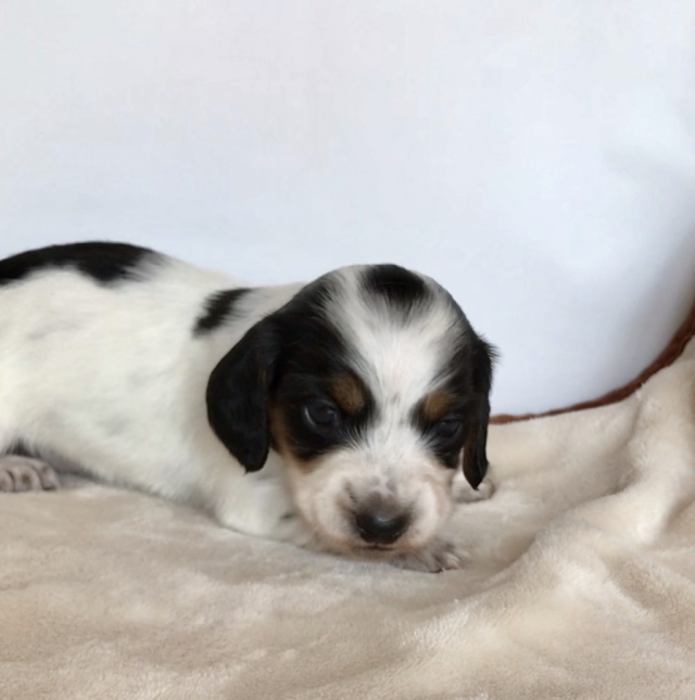 ミニチュア・ダックスフンド(ロング) ブラックタン パイボールド ♂(男の子) 神奈川県【 ブリーダーズ 】