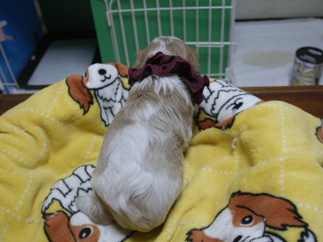 | コメント | お父さんはJKCチャンピオンの家斉君、お母さんはチャンピオン直子キャロルちゃんからキュートな女の子です。(赤リボンちゃん) 健康状態は、問題有りません。 すくすく育っています。 |