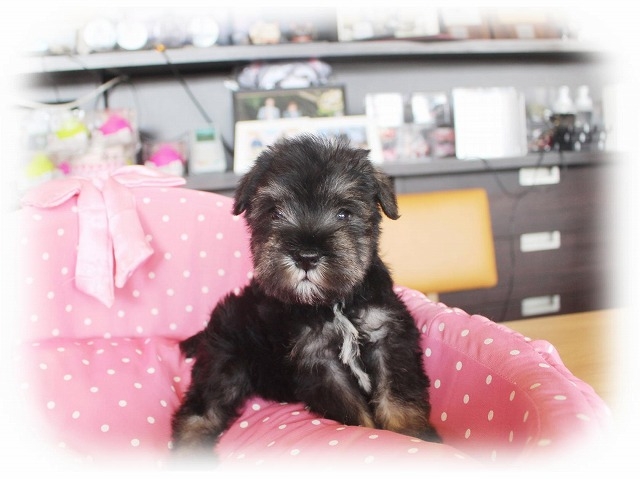 シュナウザーを主力にされているブリーダーさんだと認識しており、ボスちゃんはどうかなあと正直不安でしたがとても可愛く健康的なボスちゃんをいただきました。 掲載されていた写真より実物は想像以上に可愛くて即決し見学させていただいたその日に連れて帰りました。連絡をして、翌日行きますぅって勝手な申し出にも関わらず敏速かつ親切に対応して頂き大満足です。契約に対しても一つ一つ丁寧に説明してくださり、わかりやすかったです。この度は可愛いボスちゃんとのご縁をいただき、本当に有り難うございました。 (大阪府 女性)