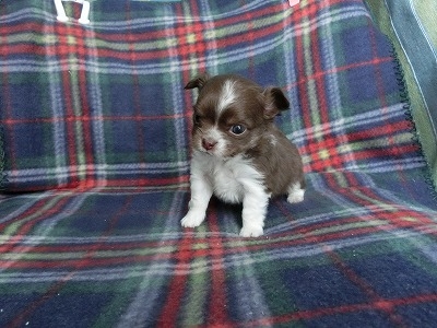 チワワ(ロング) チョコ&ホワイト ♂(男の子) 静岡県【 ブリーダーズ 】