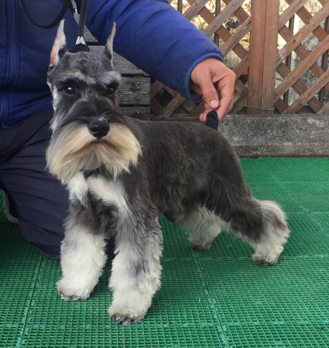 | コメント | お父さんは、チャンピオン直仔、お爺さんはAMチャンピオン お母さんは、JKCチャンピオンの良血統です。 生後7か月が過ぎましたが、現在まで体調を崩すことなく 健康優良児です。 ショーチャレンジも検討し、断耳もしましたが、 現在の体重が、4.5Kgと、小ぶりなので断念しました。 小さ目のシュナウザーをお探しの方にお勧めです。 スタイルも良く、優しい女の子です。 基本的な躾、お散歩もしっかりできます。 繁殖目的の方は、お断りさせていただきます。 生涯、家族の一員として、可愛がってください。 素敵なご縁を、お待ちしております。 |