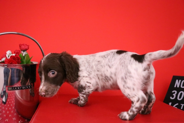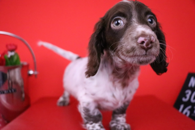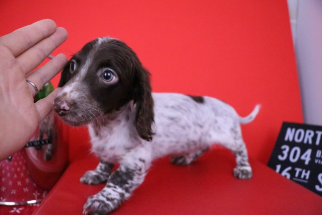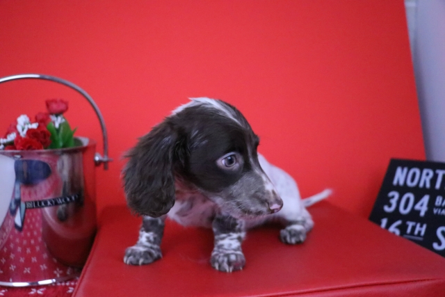 ミニチュア・ダックスフンド(ロング) チョコレート パイボールド ♂(男の子) 愛知県【 ブリーダーズ 】
