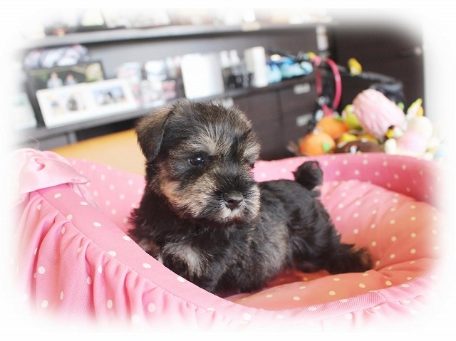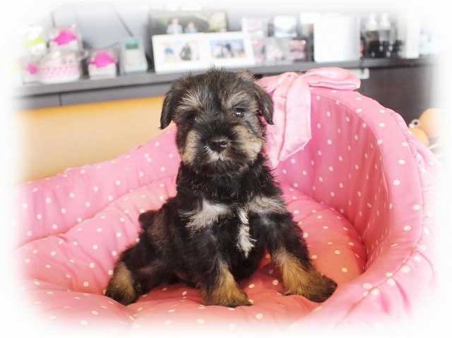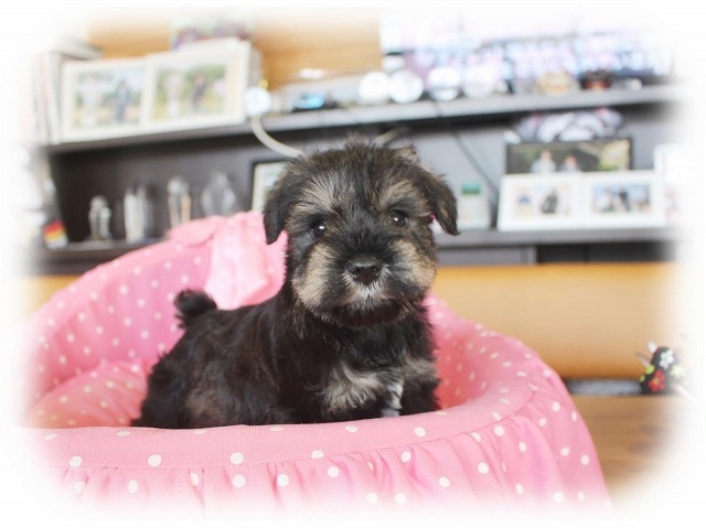 シュナウザーを主力にされているブリーダーさんだと認識しており、ボスちゃんはどうかなあと正直不安でしたがとても可愛く健康的なボスちゃんをいただきました。 掲載されていた写真より実物は想像以上に可愛くて即決し見学させていただいたその日に連れて帰りました。連絡をして、翌日行きますぅって勝手な申し出にも関わらず敏速かつ親切に対応して頂き大満足です。契約に対しても一つ一つ丁寧に説明してくださり、わかりやすかったです。この度は可愛いボスちゃんとのご縁をいただき、本当に有り難うございました。 (大阪府 女性)