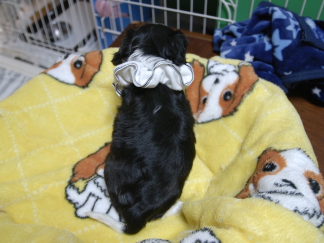 | コメント | お父さんはJKCチャンピオンの家斉君、お母さんはチャンピオン直子ヒンギスちゃんからダンディーな男の子です。(白リボン君) 健康状態は、問題有りません。 すくすく育っています |