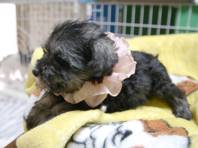 | コメント | お父さんJKCチャンピオンのゼロ君(木村敏美さん所有)、お母さんムーンちゃんから生れた可愛いキュートな女の子です。(桃リボンちゃん) 現時点では、ヘルニア等の欠点はありません。 ますます可愛くなりました。 |