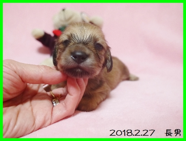 亡くなった愛犬達と同じ、 ワイヤーダックスの子犬を探していましたが、珍しい犬種という事もあり、 なかなか出会えませんでした。 諦めかけた頃、こちらのサイトで可愛い子犬を見つけ、思いきってメールをさせて頂きました。 遠藤ブリーダー様の迅速丁寧な対応で、 お陰様で無事に子犬を迎える事が出来ました。 本当にありがとうございました。 ブリーダーズ様にも感謝致します。 (北海道 女性)