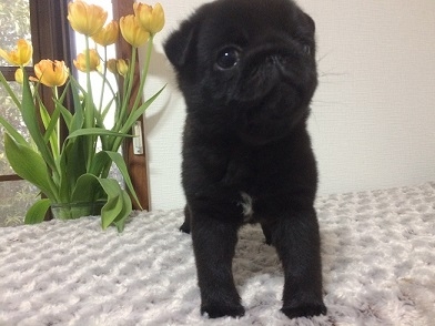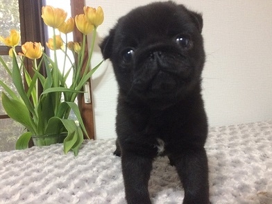 待ちに待った、超元気で、可愛いパグっ子がやってきました。2年前、12歳になるパグ犬アトムの、父母犬が亡くなり、寂しい思いをしていました。パソコンでパグっ子を見つけては、楽しんでいましたが、その中で、瞳の可愛い女の子を、見つけました。内田さんと、電話で、お話をさせていただき、女性ブりーダーさんの、優しい、親切な対応で、安心して、お願いする事が出来ました。1か月間、沢山の写真や動画、またブログにて、パグっ子の成長を見守ることが出来ました。内田さん、また、ご縁を結んでいただいたブリーダーズ、育て方にも、沢山のアドバイスを頂きました。心から感謝しています。大切に、可愛がっていきます。(愛知県 男性)