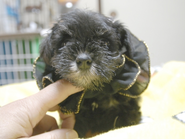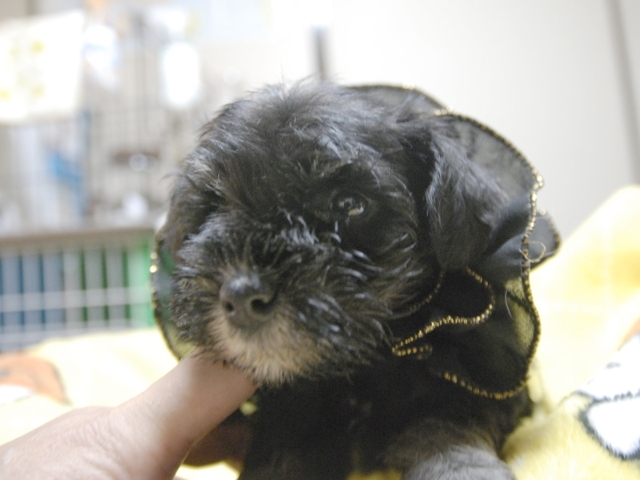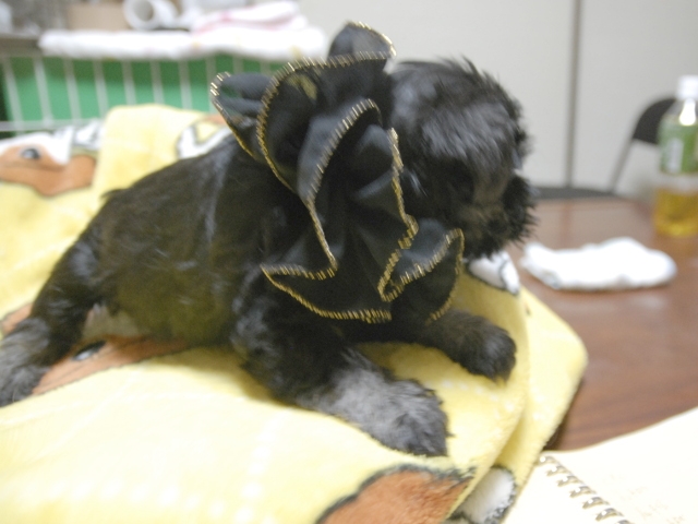 | コメント | 父さんJKCチャンピオンのダスティン君(木村敏美さん所有)、お母さんカーリーちゃんから生れた可愛いダンディーな男の子です。(黒リボン君) 現時点では、ヘルニア等の欠点はありません。 ますます可愛くなりました。 |