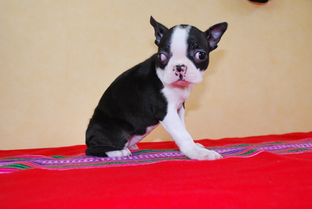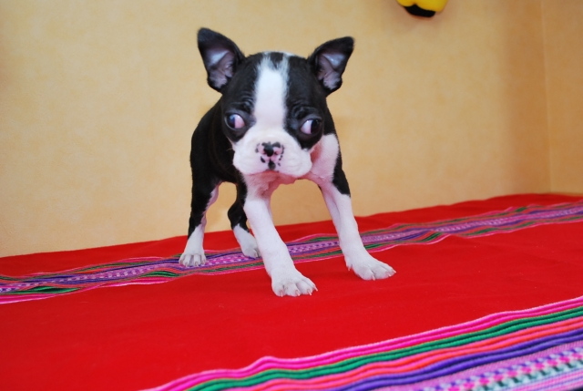| コメント | とってもかわいいボストン・テリアの女の子 一人っ子なので他の犬種(ジャックラッセル・テリア、シーズー)たちと 仲良く遊んでいます。 4月24日現在の体重は2、7㎏です。 ワクチン2回分(10,000円)は別途お願い致します。 |