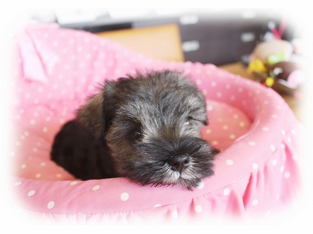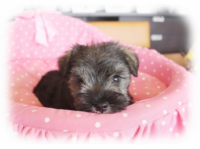 シュナウザーを主力にされているブリーダーさんだと認識しており、ボスちゃんはどうかなあと正直不安でしたがとても可愛く健康的なボスちゃんをいただきました。 掲載されていた写真より実物は想像以上に可愛くて即決し見学させていただいたその日に連れて帰りました。連絡をして、翌日行きますぅって勝手な申し出にも関わらず敏速かつ親切に対応して頂き大満足です。契約に対しても一つ一つ丁寧に説明してくださり、わかりやすかったです。この度は可愛いボスちゃんとのご縁をいただき、本当に有り難うございました。 (大阪府 女性)