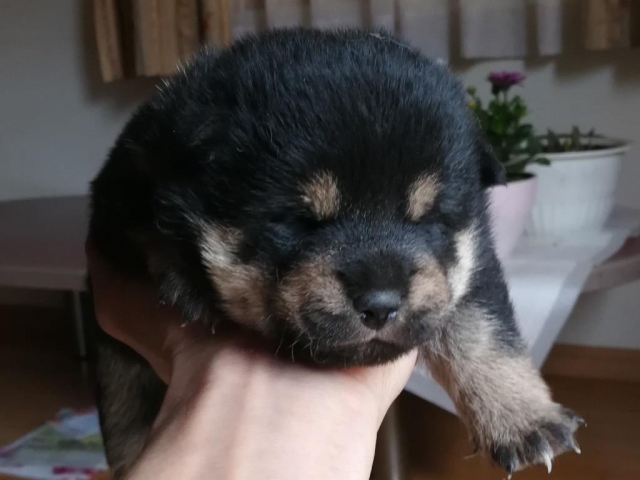 | コメント | 生年月日 平成30年2月23日 お引渡し予定時期 平成30年4月23日頃 性別 雄 毛色 黒毛 ワクチン接種状況 生後60日前後に接種予定 駆虫実施回数 未実施 血統書発行状況 申請済み ※両親共に優良血統の血筋です 発色状況・・・三色綺麗に発色しています 健康状態・・・良好 発育度合・・・順調 その他説明 順調に成長しています。全体的な構成も良く雄犬らしい容姿になってきました。顔の輪郭良く奥目でなかなか良い子です。 |