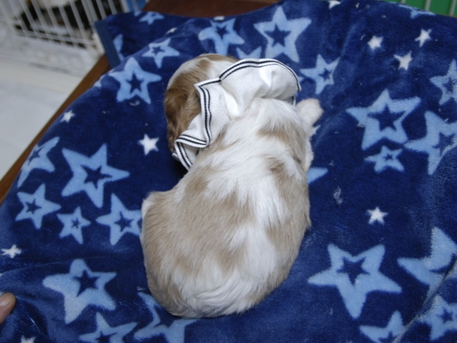 | コメント | お父さんはJKCチャンピオンの吉宗君、お母さんはチャンピオン直子インディーちゃんからキュートな女の子です。(白リボンちゃん) 健康状態は、問題有りません。 すくすく育っています。 |