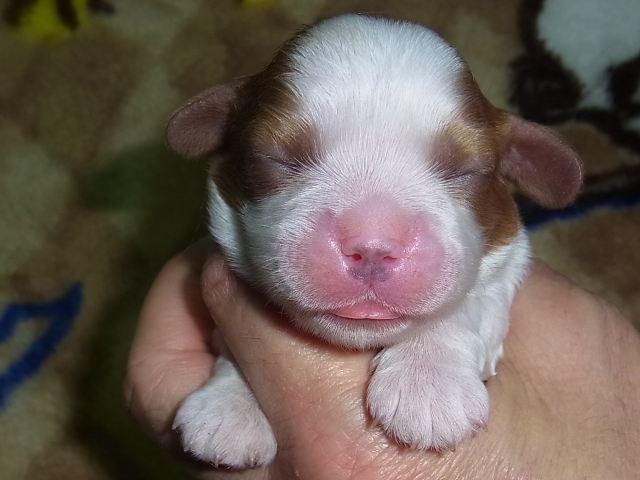 橋本さんはキャバリアのプロでとても冗談大好きで初めての電話の際から毎回楽しくお話させていただきました。待望のお迎えの際も先輩キャバリアちゃんたちが賑やかに迎えてくれて(キャバリア祭り笑)、子犬のパパママにも会わせていただき感激しました。ちなみに橋本さんちのキャバリアちゃんたちはみんな美男美女でかわいい子ばっかりです。橋本さんの優しくキャバ愛溢れるお人柄も決め手にもなりました。子犬は夜鳴きもせず当日から元気いっぱいで毎日おてんば発揮してます笑、これからもずっと大切に育てていきます!また子犬が落ち着きましたら橋本さんとキャバちゃんたちに会いに素敵な尾道に里帰りさせてもらいたいなぁと企んでおります笑、本当にありがとうございました! (京都府 女性)