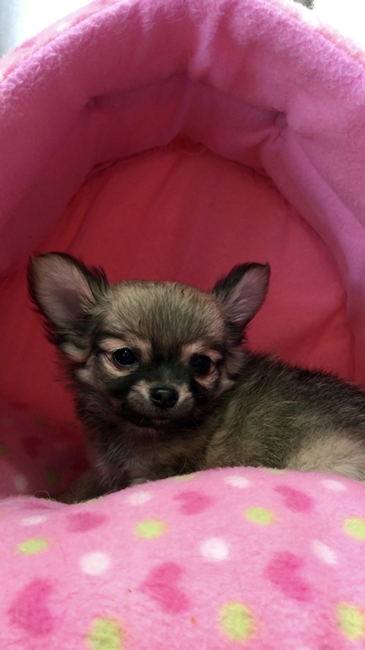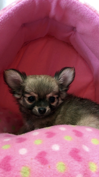 ネットだけでは不安もあり、見学をさせて頂きとてもかわいいちわわちゃんと出逢えました。その他のちわわちゃん達も見せて頂き、皆人懐っこく、清潔な環境で愛情たっぷりに育てられたのだと実感しました。家にきた仔も甘え上手で、人懐っこいとてもいい仔。 トイレも早くトレーニングされてたみたいですぐにほぼ完成。 ちわわちゃん達の健康にもとても気を配ってられ、フォローもしっかりして頂けるので信頼できるブリーダーさんです。 タイトルを取ったちわわも見せて頂きました。 犬質もとても良く思ったので見させて頂いたその日に連れて帰りました。本当にかわいい仔に出逢えてよかったです。有難うございました。 (京都府 女性)