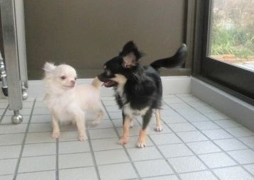 向かって左の子、小さくてもどの子とも仲良し社会性も有り2頭目にも