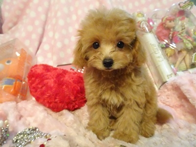 | コメント | お父さん・・チワワ お母さん・・プードル ビー玉の様な真ん丸お目目が 可愛い男の子です 明るめなクリームカラーで 可愛らしい毛色です お鼻も短めです 毛質は緩やかな巻が有って プードルよりで 抜け毛もほとんど気になりません 活発な性格で元気の良い子です 大人になって3㎏~3,5㎏前後の サイズの仕上がり予想です 健康診断、1回目のワクチン済みです |