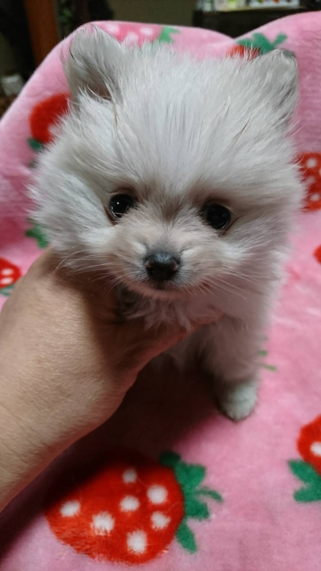 初めてブリーダーさんからの子犬を譲って頂いたのですが 凄く丁寧な説明に加え返事も早かったので スムーズにポメちゃんをお迎えすることができました。 飛行機の時間上、こちらの都合で早い時間に犬舎にお伺いすることになったのですが 快く対応して頂き凄く助かりました。 ポメちゃんのお顔も可愛く、サイズも小振りで、性格も人懐っこく 我が家に到着初日から家族のアイドルです。 素晴らしい出会いとポメちゃんとのご縁に大変感謝しております。 この度は誠にありがとうございました。 定期的に成長報告のご連絡、致します(^-^)(沖縄県 女性)