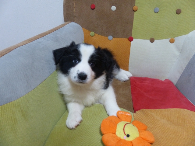 丁寧な対応をしていただきありがとうございました。徳島から大阪まで、車での長時間移動になりましたが、わが家に到着後もとても元気いっぱいです。譲り受けてから3日たちましたが、初日の夜に家族が寝室に行った後、夜鳴きしたぐらいで、普段は無駄吠えもなく、近所への気づかいの心配もありません。宮田ブリーダーさんからは分からないことがあれば連絡してと言っていただいており、ボーダーを初めて飼う当方としましては、非常に心丈夫に思っています。(大阪府 男性)