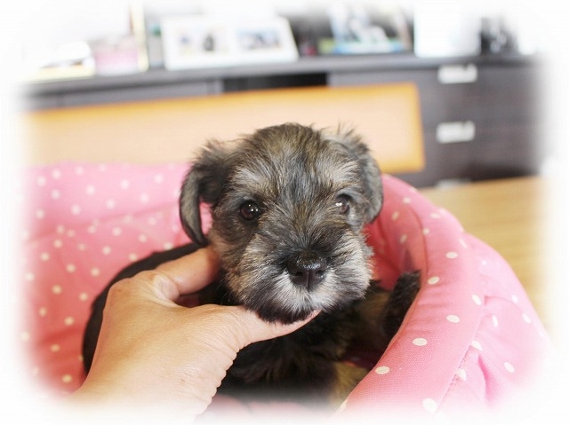 シュナウザーを主力にされているブリーダーさんだと認識しており、ボスちゃんはどうかなあと正直不安でしたがとても可愛く健康的なボスちゃんをいただきました。 掲載されていた写真より実物は想像以上に可愛くて即決し見学させていただいたその日に連れて帰りました。連絡をして、翌日行きますぅって勝手な申し出にも関わらず敏速かつ親切に対応して頂き大満足です。契約に対しても一つ一つ丁寧に説明してくださり、わかりやすかったです。この度は可愛いボスちゃんとのご縁をいただき、本当に有り難うございました。 (大阪府 女性)