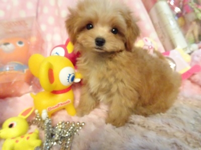 | コメント | お父さん・・チワワ お母さん・・プードル まんまるなお目目が お人形さんの様でとても 可愛い男の子です お鼻も短く詰まっていて 幼いお顔立ちです 少し短めな足が可愛いです 毛質はロングで緩やかな カールが有りふわふわしています 頭の上と胸と顎、足先がほんの少し 白い毛が有って可愛いポイントです 活発なやんちゃな愛嬌の有る性格です 大人になって2㎏~2,5㎏前後のティーカップから 小さめタイニーの可愛いサイズの仕上がり予想です 頭の上に小さいペコが有りますが 診断済みです 健康診断、1回目のワクチン済みです |