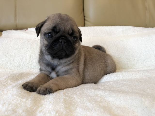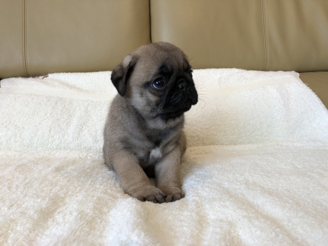 パグの飼育歴は30年以上になります。今年親の代から買っていた 黒パグを亡くしてから家を埋め尽くしているパググッズを見るたびに いつか新しい仔を迎えたいと思うようになりました。 北関東でブリーダーさんを探しているうちに木村様を知り、見学、購入の運びとなりました。 このたび性格も大変おおらかな素晴らしい仔犬をお譲りいただき大変感謝しております。 (茨城県 男性)