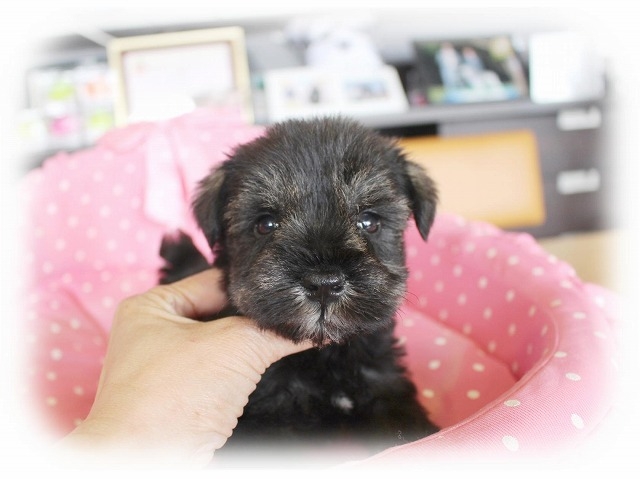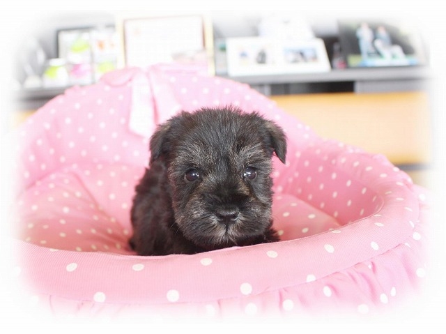 シュナウザーを主力にされているブリーダーさんだと認識しており、ボスちゃんはどうかなあと正直不安でしたがとても可愛く健康的なボスちゃんをいただきました。 掲載されていた写真より実物は想像以上に可愛くて即決し見学させていただいたその日に連れて帰りました。連絡をして、翌日行きますぅって勝手な申し出にも関わらず敏速かつ親切に対応して頂き大満足です。契約に対しても一つ一つ丁寧に説明してくださり、わかりやすかったです。この度は可愛いボスちゃんとのご縁をいただき、本当に有り難うございました。 (大阪府 女性)
