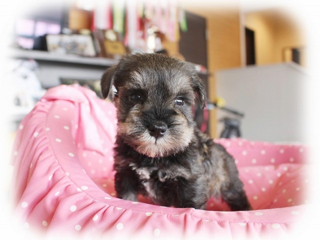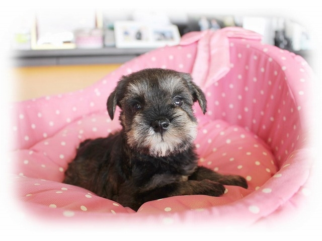 シュナウザーを主力にされているブリーダーさんだと認識しており、ボスちゃんはどうかなあと正直不安でしたがとても可愛く健康的なボスちゃんをいただきました。 掲載されていた写真より実物は想像以上に可愛くて即決し見学させていただいたその日に連れて帰りました。連絡をして、翌日行きますぅって勝手な申し出にも関わらず敏速かつ親切に対応して頂き大満足です。契約に対しても一つ一つ丁寧に説明してくださり、わかりやすかったです。この度は可愛いボスちゃんとのご縁をいただき、本当に有り難うございました。 (大阪府 女性)