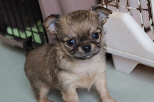 | コメント | 初めてチワワを飼われる方にも、安心なサイズです♥ 穏やかな性格な恥ずかしがり屋さん 4/26現在の体重は670g パパ クリーム スムース 2.3キロ ママ ブラックタン ロング 2.5キロ |