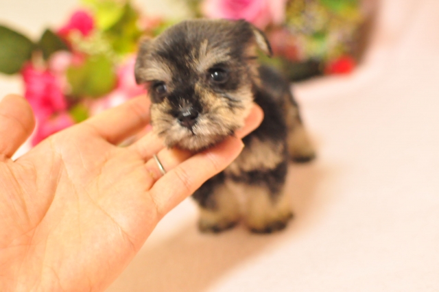 | コメント | 3月6日に am11時53分 183gで生まれました 5人姉弟の次女です 5人の中で一番小さく4月13日 328gになりました シュナウザーはとっても素直で飼いやすく、陽気で活発ですっごく甘えん坊です マズルは詰まってと〜っても可愛いお顔です 主来的に見ても極小タイプだと思います 離乳食を食べ始めもうすぐ一回目のワクチンの時期になります 今からもっともっと可愛くなってくるので注目の子です |