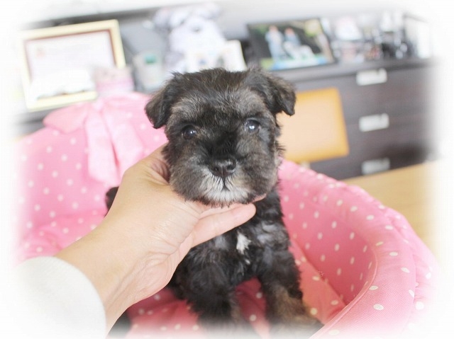 シュナウザーを主力にされているブリーダーさんだと認識しており、ボスちゃんはどうかなあと正直不安でしたがとても可愛く健康的なボスちゃんをいただきました。 掲載されていた写真より実物は想像以上に可愛くて即決し見学させていただいたその日に連れて帰りました。連絡をして、翌日行きますぅって勝手な申し出にも関わらず敏速かつ親切に対応して頂き大満足です。契約に対しても一つ一つ丁寧に説明してくださり、わかりやすかったです。この度は可愛いボスちゃんとのご縁をいただき、本当に有り難うございました。 (大阪府 女性)