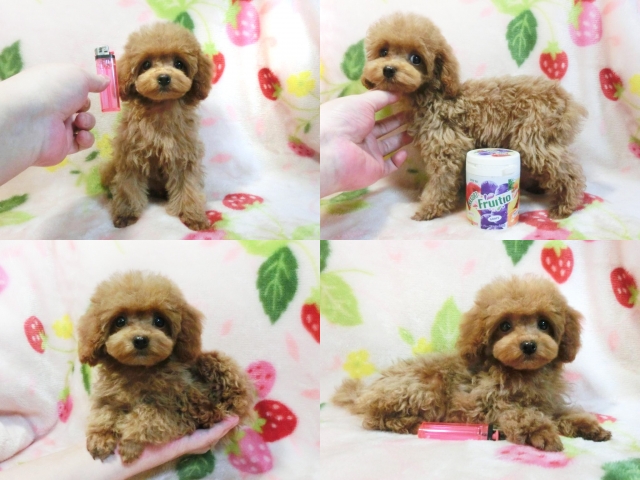 | コメント | ☆☆ティーカップサイズ予想☆☆ホント小っちゃくてビックリですよ!! クリクリのお目々に超短いお鼻チビチビめっちゃカワイイ女の子♪ のんびりとした優しい性格でホントとっても愛らしい飼い易い仔☆ 毛質最高!!しっかりした巻毛に毛量も充分で綺麗なレッドですよ^^ 小さくてもとっても元気ティーカップ兄弟達と仲良く遊んでます♪ 生後90日の体重は約850g成犬予想体重1.8kg未満だと思います!! 身体のバランスが良くしっかりした硬い胴で骨量多い丈夫な仔☆ 現状噛合せや骨格・関節形成など欠点の心配は一切ありません!! 離乳も済み食欲旺盛でドライでカリカリ!!いつでもお引き渡しOK♪ 素敵なご家族様からのお問い合わせをお待ちしております^^ 【その他諸費用】 6種ワクチン接種費用:6千円【税・画像入証明書付・健康診断込】 ※お迎えの場合で【生体代金】+【ワクチン接種費用】のみです。 ●血統書登録団体:JKC(※3ヵ月以上要す事もあります) |