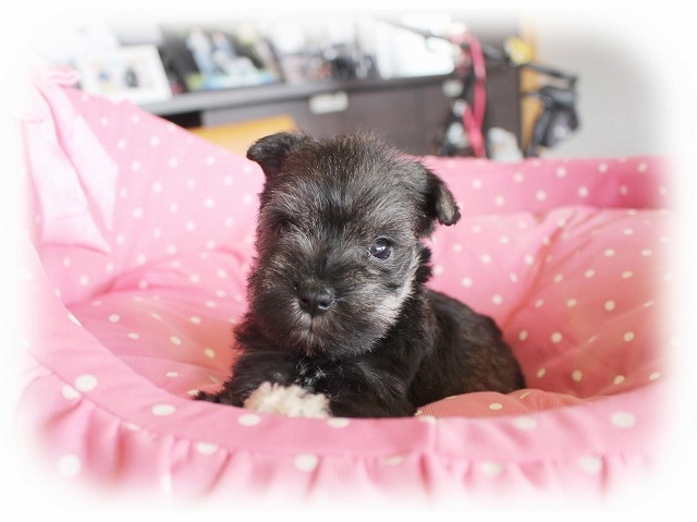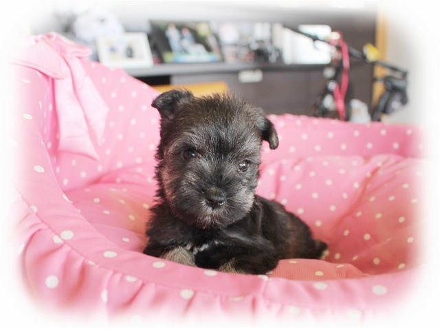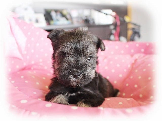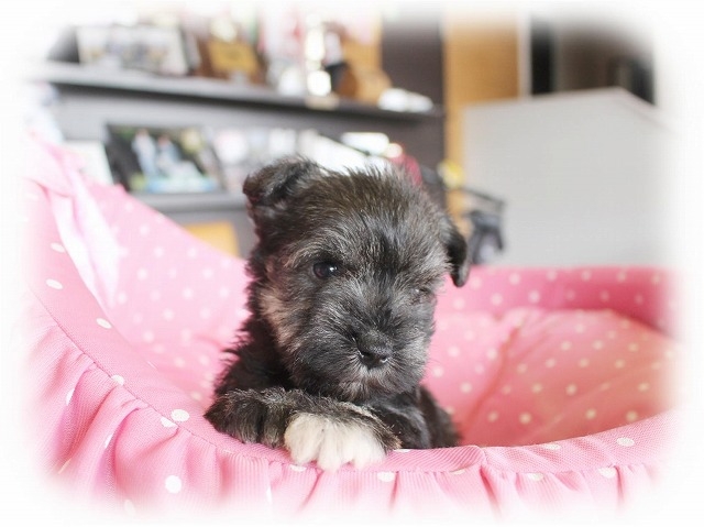 シュナウザーを主力にされているブリーダーさんだと認識しており、ボスちゃんはどうかなあと正直不安でしたがとても可愛く健康的なボスちゃんをいただきました。 掲載されていた写真より実物は想像以上に可愛くて即決し見学させていただいたその日に連れて帰りました。連絡をして、翌日行きますぅって勝手な申し出にも関わらず敏速かつ親切に対応して頂き大満足です。契約に対しても一つ一つ丁寧に説明してくださり、わかりやすかったです。この度は可愛いボスちゃんとのご縁をいただき、本当に有り難うございました。 (大阪府 女性)
