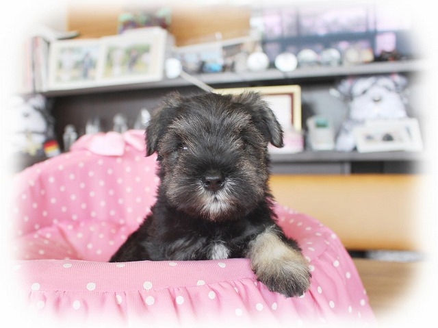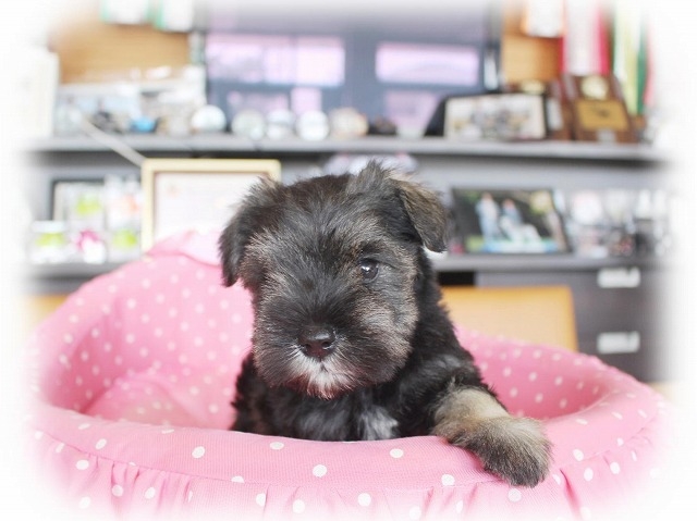シュナウザーを主力にされているブリーダーさんだと認識しており、ボスちゃんはどうかなあと正直不安でしたがとても可愛く健康的なボスちゃんをいただきました。 掲載されていた写真より実物は想像以上に可愛くて即決し見学させていただいたその日に連れて帰りました。連絡をして、翌日行きますぅって勝手な申し出にも関わらず敏速かつ親切に対応して頂き大満足です。契約に対しても一つ一つ丁寧に説明してくださり、わかりやすかったです。この度は可愛いボスちゃんとのご縁をいただき、本当に有り難うございました。 (大阪府 女性)