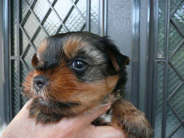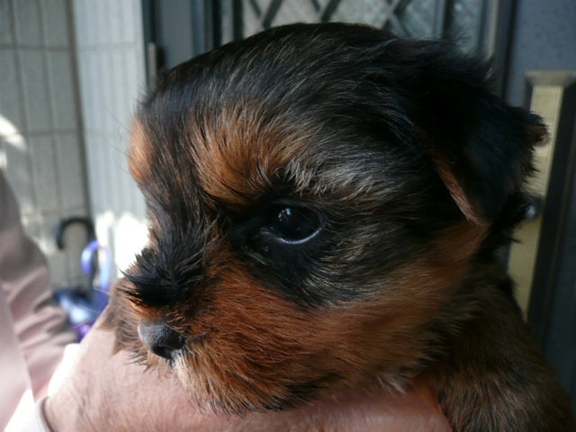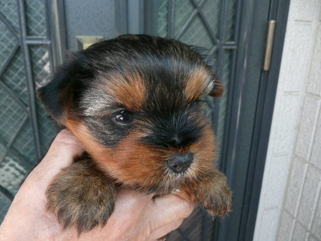 | コメント | 3/30生まれの男の子です。一人っ子です。 お父さん犬は都内の有名犬舎の犬で2.4kg、タンカラー(金褐色)が鮮やかで非常に綺麗です。 お母さん犬は当犬舎で生まれ育った、タンカラー(金褐色)の色素が濃い2.6kgで性格の良い子です。 この男の子はタンカラー(金褐色)の色素が濃くヨーキーらしい毛色です。 今のところ丸い頭部で口吻(マズル)が詰まっていて、目も丸く、耳も丸くって小熊のような可愛さです。 5/12現在(生後43日目)の体重が950gで大きめサイズです。 このため価格を大幅に値下げしました。 大きさにこだわらない方におすすめです。 早目の見学をお待ちしております。 |