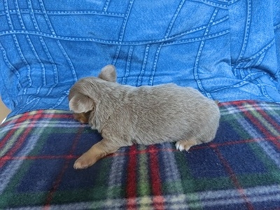 素敵で気さくなブリーダーさんです。 お問合せから、アドバイスまで親切に対応して頂き、沢山のお土産まで頂きました。 写真で一目惚れ。両親にも合わせて頂けたので、将来はこんな感じの子に成長するんだな。と想像出来ました。 お迎え初日、ご飯を食べず相談したのですが、丁寧に色々教えて頂きました。 ブリーダーさんからのお迎えは初だったのですが、素敵なご縁に感謝しています。 名前は、井上さんが仮の名前で呼ばれていた、「れい」と名付けました。 これからの成長が楽しみです❤︎ (埼玉県 女性)