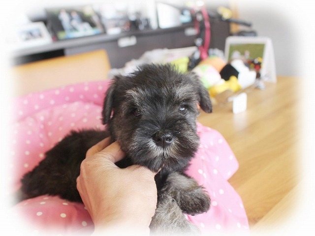 シュナウザーを主力にされているブリーダーさんだと認識しており、ボスちゃんはどうかなあと正直不安でしたがとても可愛く健康的なボスちゃんをいただきました。 掲載されていた写真より実物は想像以上に可愛くて即決し見学させていただいたその日に連れて帰りました。連絡をして、翌日行きますぅって勝手な申し出にも関わらず敏速かつ親切に対応して頂き大満足です。契約に対しても一つ一つ丁寧に説明してくださり、わかりやすかったです。この度は可愛いボスちゃんとのご縁をいただき、本当に有り難うございました。 (大阪府 女性)