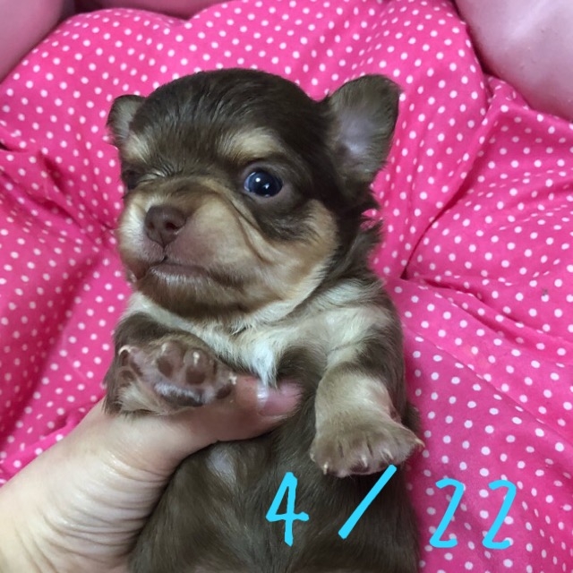 | コメント | ベテランママのダグちゃん 最後の子育てです! 離乳食を4/20ごろスタート! 初回ワクチン接種を5/25ごろ予定しています。 初回ワクチン接種後、体調を整え5月下旬頃からお引き渡し可能です! お引き渡し後のしつけ相談、訪問相談、ペット保険も取り扱いしていますのでなんでも相談してください! |