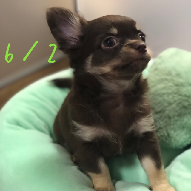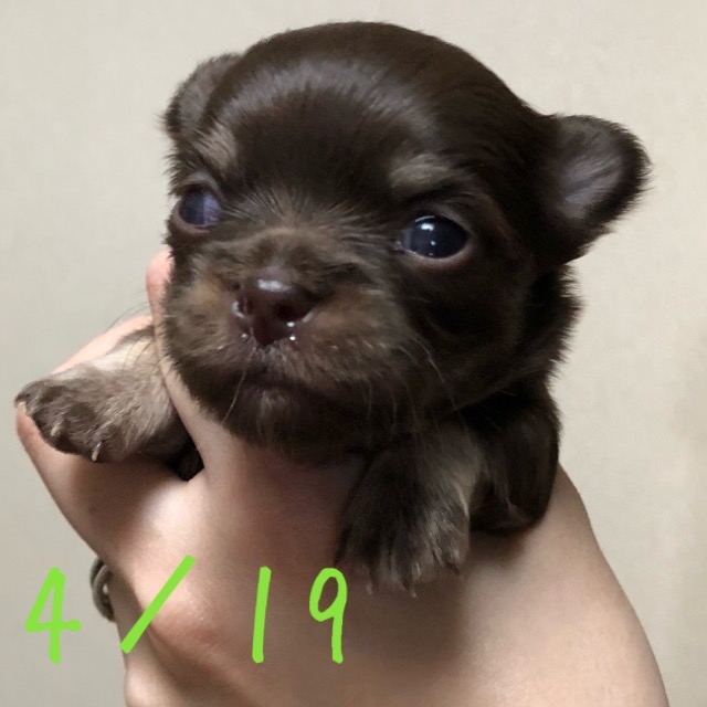 | コメント | ママはフォーンのアンちゃん 滅多にないすごく濃いチョコタンです! 離乳食を4/20スタート! カリカリ二回食練習中! 初回ワクチン接種を5/23にしました! 2回目のワクチン接種を6/22にしました! お引き渡し後のしつけ相談、訪問相談、ペット保険も取り扱いしていますのでなんでも相談してください! |