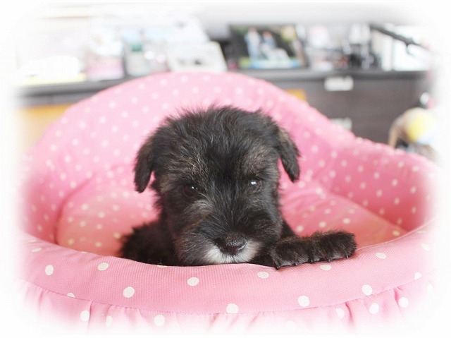 シュナウザーを主力にされているブリーダーさんだと認識しており、ボスちゃんはどうかなあと正直不安でしたがとても可愛く健康的なボスちゃんをいただきました。 掲載されていた写真より実物は想像以上に可愛くて即決し見学させていただいたその日に連れて帰りました。連絡をして、翌日行きますぅって勝手な申し出にも関わらず敏速かつ親切に対応して頂き大満足です。契約に対しても一つ一つ丁寧に説明してくださり、わかりやすかったです。この度は可愛いボスちゃんとのご縁をいただき、本当に有り難うございました。 (大阪府 女性)