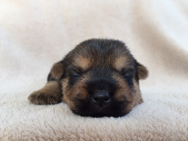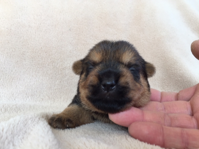 | コメント | 飼い主に忠実で人生のパートナーとして最適です。 小型でタフなテリアです。 父犬も母犬も人や犬に対して友好的で、優しい性格。 毛色はブラックタンです。 |