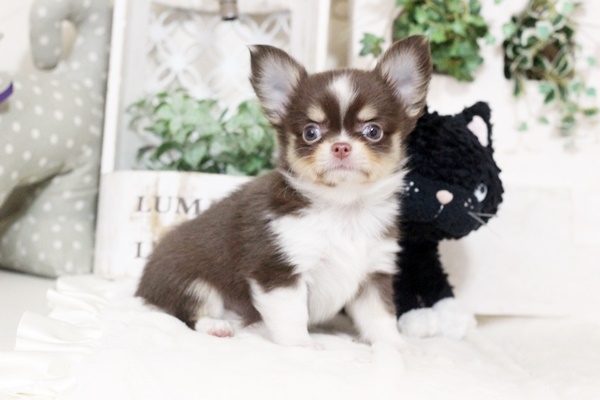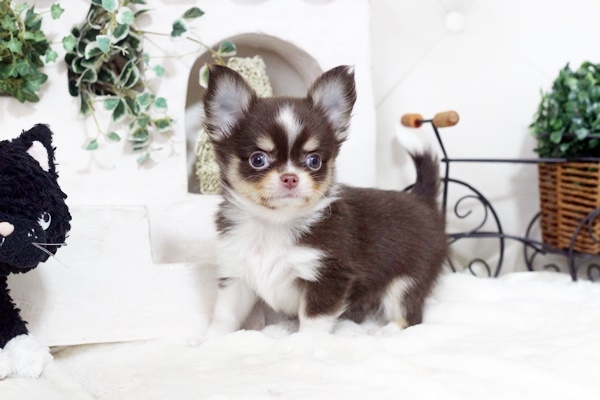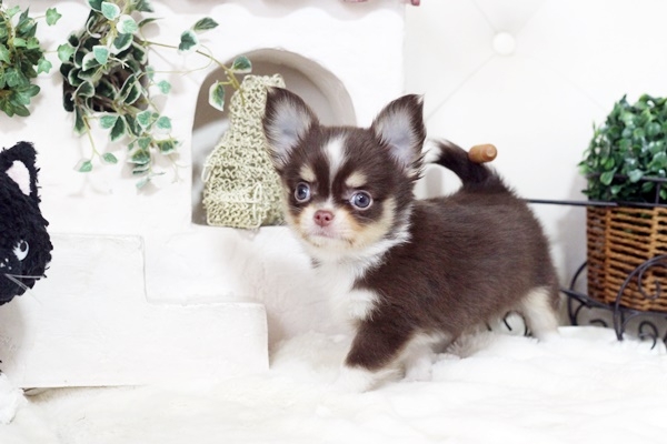 チワワ(ロング) チョコタン&ホワイト ♂(男の子) 佐賀県【 ブリーダーズ 】
