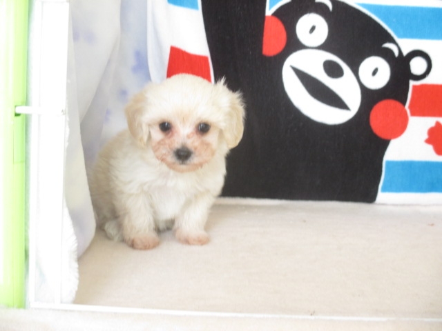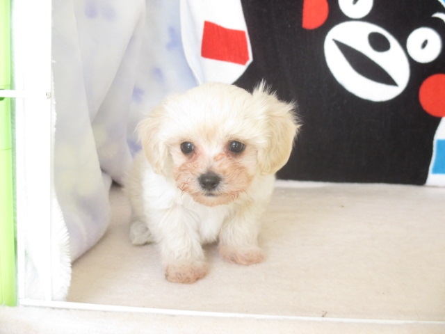 | コメント | 父親 プードル 母親 マルチーズ 離乳食をたくさん食べて、元気に成長しています。 直接おいでになってご予約されるお客様もいらっしゃいますので 先にご予約が入った場合はご了承ください |