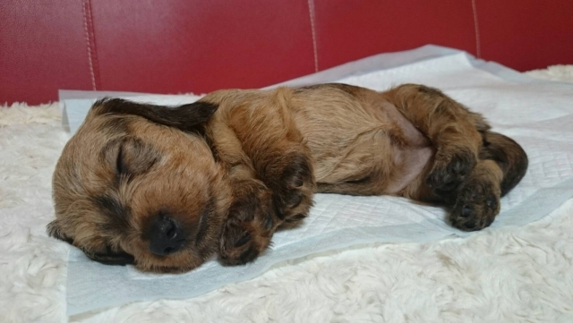 ブリーダーさんからインターネットで購入するのは初めてでしたが、とても親切で温かいブリーダーさんで成長過程や様子を知らせてくださり、ワクワクして待っておりました。 ショーン(子犬)はとても可愛い子で、おりこうさんです。ケージのなかでうんちをしてもいたずらすることなく安心です。 来てから一ヶ月がすぎましたが、もう我が家でなくてはならない中心になってます。ありがとうございました。(神奈川県 女性)