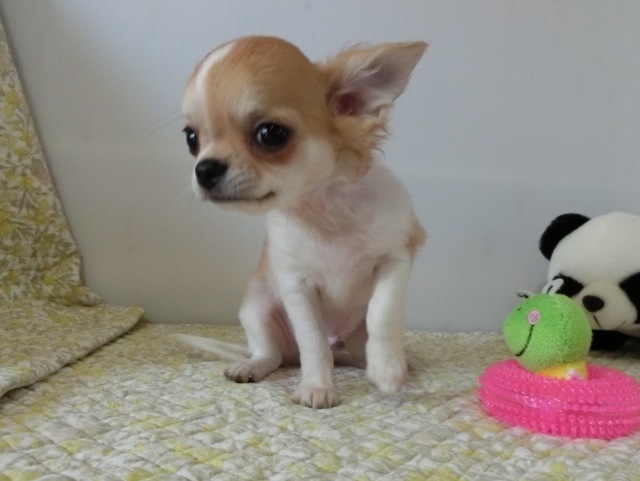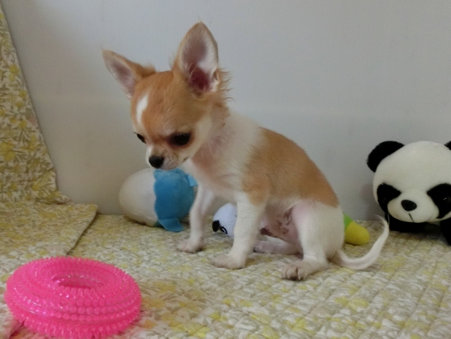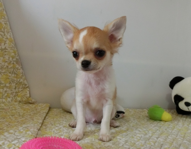 | コメント | ホワイト&クリーム(ロング)のママとフォーン(ロング)のパパから生まれました。 でこっぱちの可愛い子です。 黒い差し毛はだんだん薄くなり綺麗なカラーになります。 食欲モリモリで兄妹と競い合って食べています。 普通~しっかりサイズの子なので初めてチワワを飼う方や小さなお子様のいるご家庭でも安心です。 初回ワクチン済みました。 簡単な健康チェックも問題ありませんでした。 実物はお写真よりもずっと可愛いです! 是非ご見学にお越しください。 ご見学当日にお迎え希望の場合は事前にお知らせください。 《お願い事》 まずは、子犬を飼う事をご家族で十分お話合いをされ、子犬をお迎えできる環境が整ってからのお問い合わせをお願いいたします。 お問い合わせ時に希望の子犬が決まっておらず、生まれている子犬全部を見たい等のご希望には添えかねます。 こまめな写真更新を心がけておりますが、 個別に新たな写真を希望される場合、子犬の向きや角度など細かなリクエストは撮影に時間がかかり子犬のストレスになりますのでご遠慮ください。 写真撮影は全くの素人ですのでどうぞご理解ください。 |