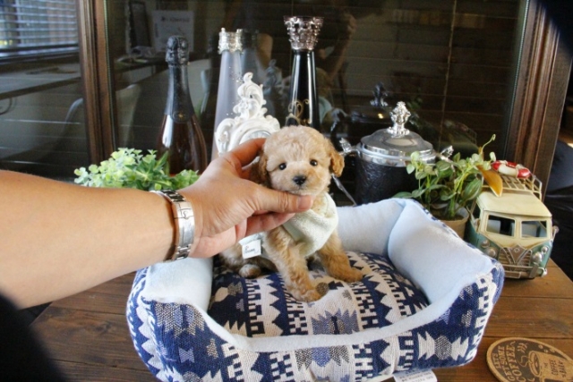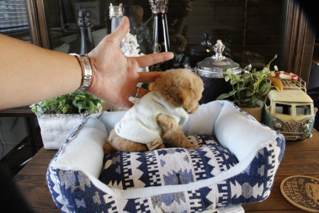本日、我が家に小さな可愛い女の子のトイプードルがやって来ました。 遠距離という事もあり、暑い時期、飛行機の事なども心配していましだが、家に着いた途端、元気に走り、食欲も旺盛で、今まで大切に育てられてきたのだなぁ、ということがよくわかりました。 連休中にも関わらず、戸田様には、伊丹空港まで連れて来て頂き、こちらの質問にも的確に答えて下さいました。 大変信頼できるブリーダーです。 遠距離で悩まれている方も、安心して新しい家族を迎えられますよ。(兵庫県 男性)